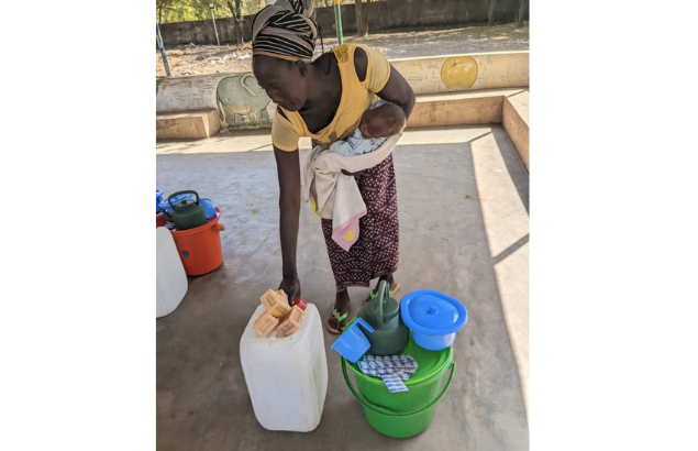 Laurentine, mère dont les jumeaux sont hospitalisés au CREN du CHR de Fada bénéficie d’un kit wash de Première Urgence Internationale.