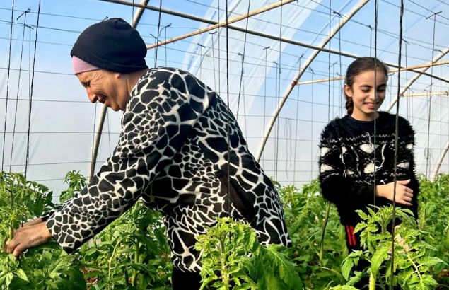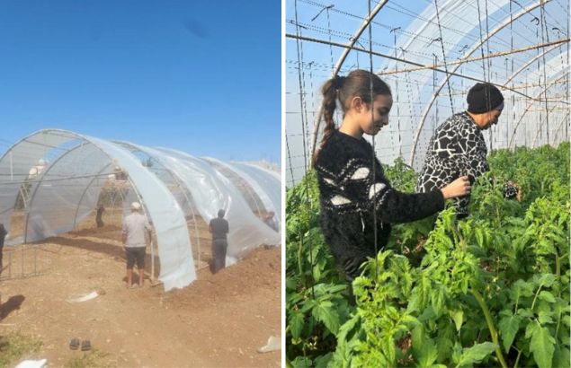 Sabah and her niece in their rehabilitated greenhouse growing tomatoes in Tall Birch, December 2022. © Lamia Dandan / Première Urgence Internationale