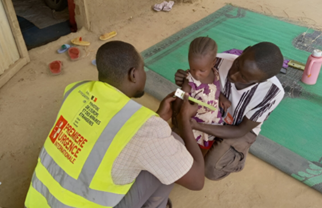 Dépistage de la malnutrition chez un enfant de moins de 5 ans, Tolkomari, Mayo-Kani, Extrême-Nord, Cameroun, février 2024 | © Alfred ETOUBOU / Première Urgence Internationale