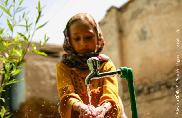 With funding from the Centre of Crisis and Support of the French Ministry of Foreign Affairs, Première Urgence Internationale[1] provided safe and running water to 1,055 households (7,358 people) in three districts of Kabul province: Bagrami, Shakardara, and Mir Bacha Kot. Tothis end, three boreholes were drilled and equipped with new solar-powered pumping stations. 15,412 kilometres of newly laid water pipes and 724 installed water taps connect the water sources to households. Première Urgence Internationale also built accessible latrines for families with members with special needs and limited mobility.