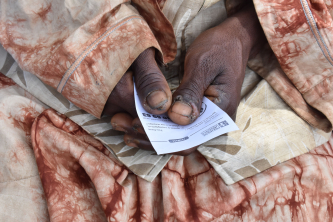 Ticket d’enregistrement pour les transferts d’argent liquide, région de l’Ouest © Hermann NGOUGNI / Première Urgence Internationale